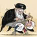 متظاهر يرتدي قناع وجه رئيس النظام السوري بشار الأسد جالسًا على الأرض داخل قفص الاتهام أمام “المحكمة الجنائية الدولية” في لاهاي غربي هولندا- 7 من حزيران 2011 (ROBIN UTRECHT / ANP / AFP)