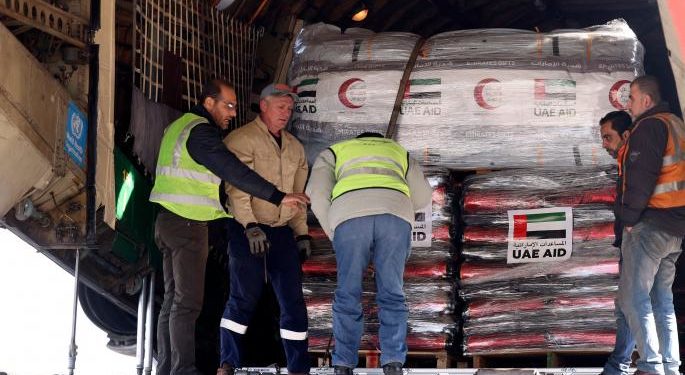 والمتابع لفيض الإنسانية الإماراتية يلحظ انشغالها بجميع مناطق النظام، فأمس الإثنين على سبيل المثال، وصلت طائرة مساعدات إلى مطار اللاذقية محملة بأربعة وعشرين طناً من المساعدات، وهبطت طائرة، في اليوم نفسه، بمطار دمشق، محملة بثلاثين طناً من المساعدات، وثالثة، في نفس الوقت، بمطار حلب، محملة بخمسة وعشرين طناً.